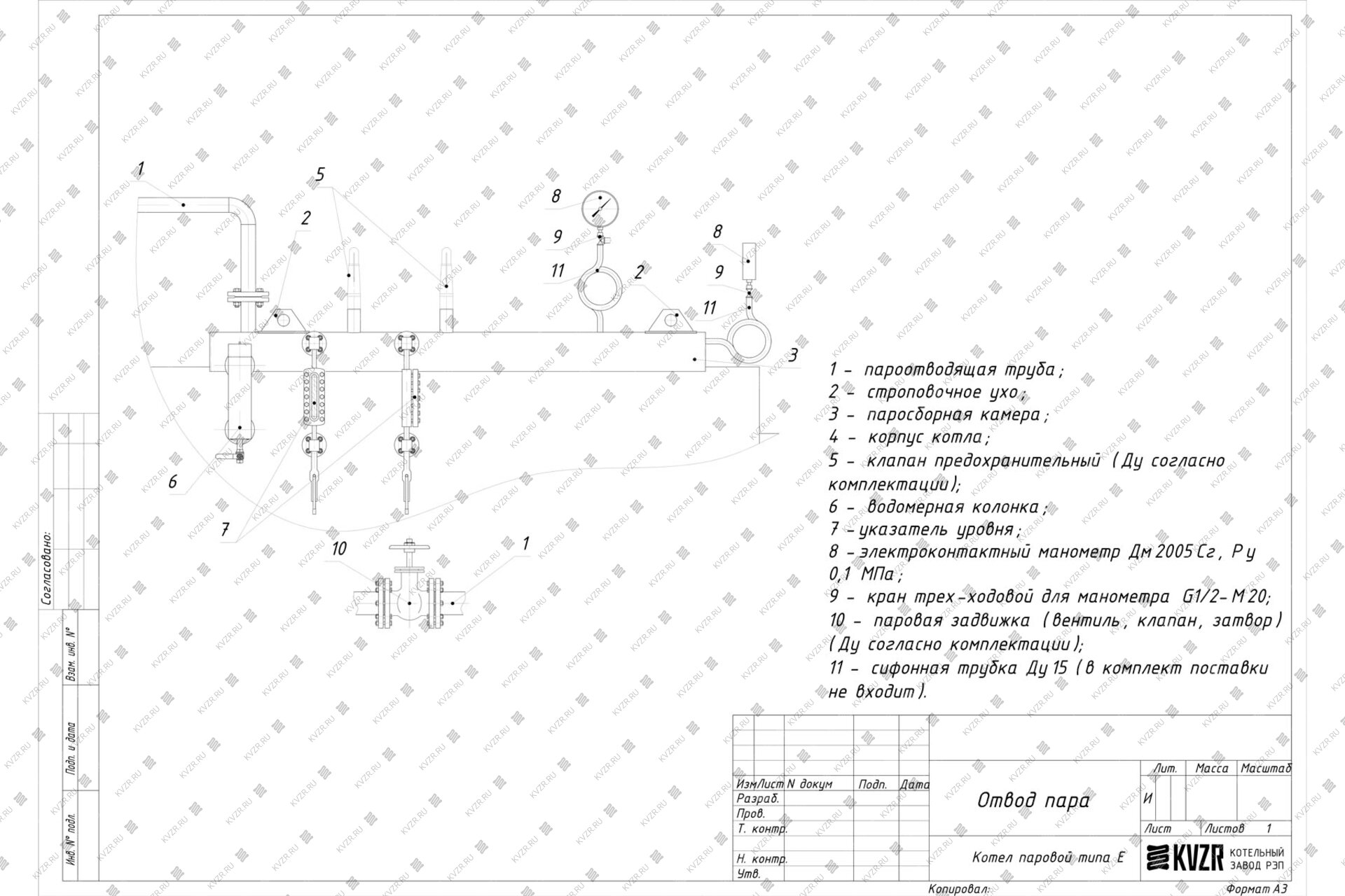 На трубопроводе выдачи пара, в непосредственной близости от котла, устанавливается запорное устройство.